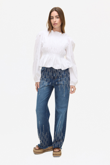 PANTALÓN DENIM CON RECORTE Y TAJO
