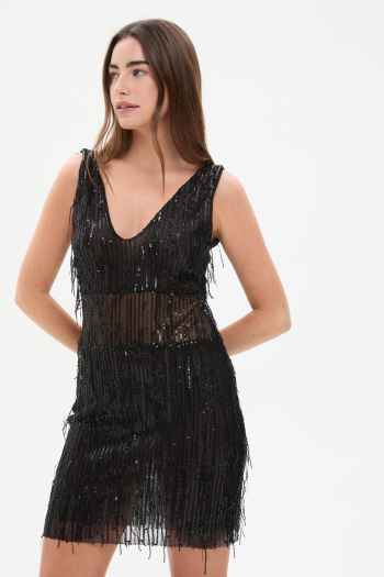 VESTIDO CORTO DE LENTEJUELAS CON FLECOS